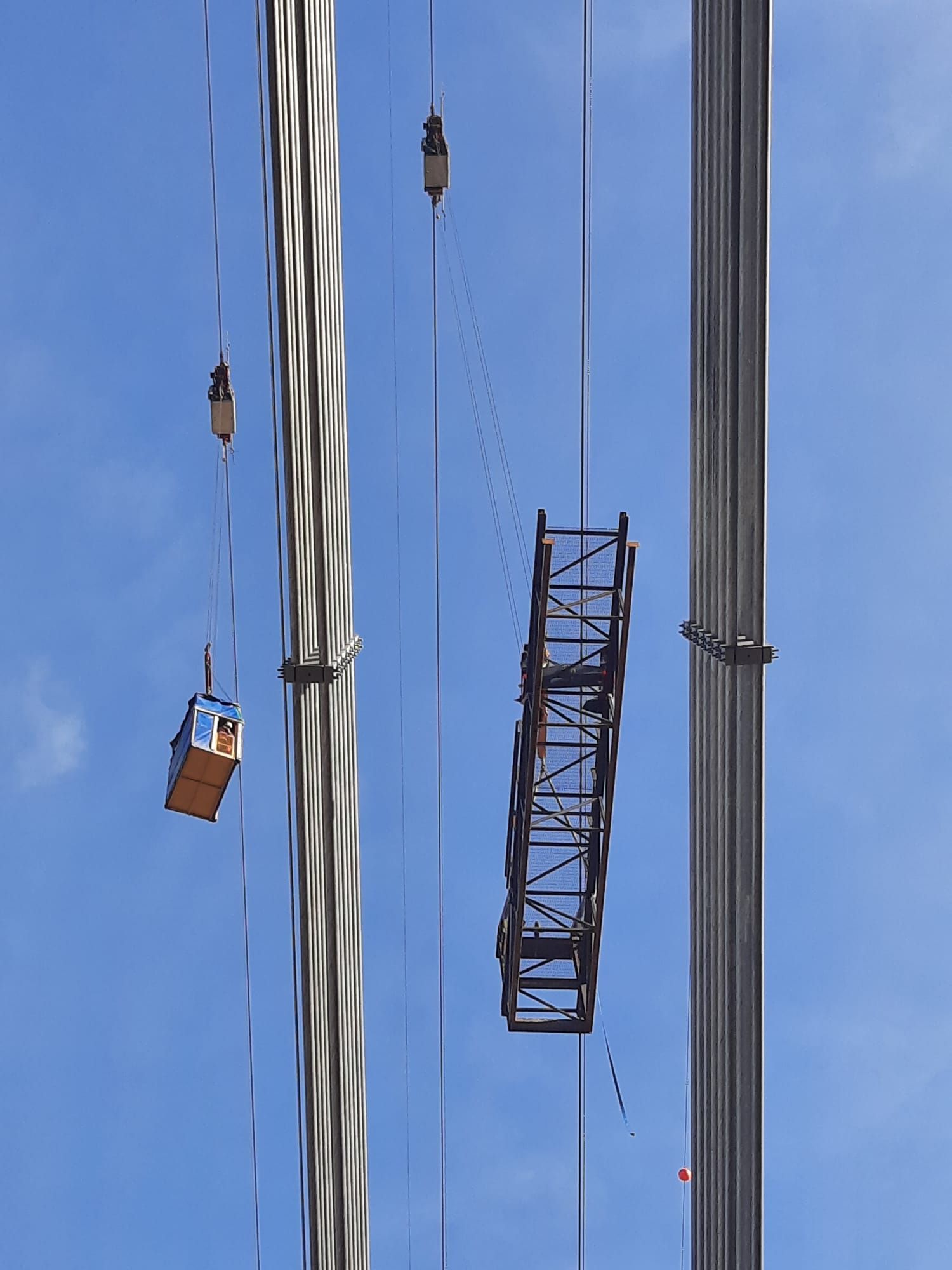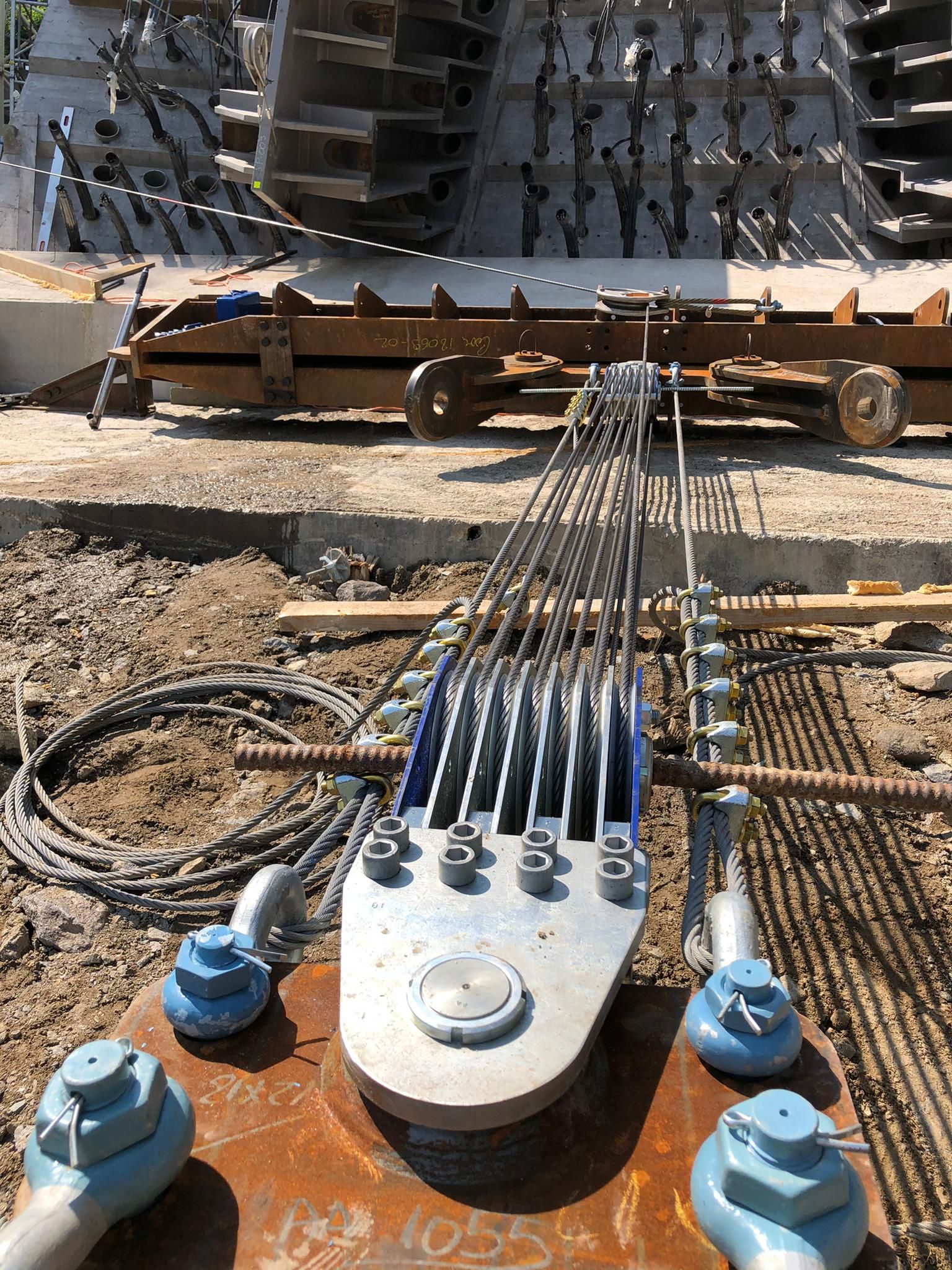 Der erste Bauabschnitt der A 26 ist die neue Linzer Donaubrücke. Die Hängebrücke besteht aus einem sogenannten Tragwerk für beide Richtungsfahrbahnen. Die zwei horizontalen Hauptseile über die Donau, die das Brückengewicht von 13’000 Tonnen tragen, sind 500 Meter lang und wiegen jeweils 85 Tonnen. Jedes Hauptseil besteht wiederum aus einem Bündel von zwölf einzelnen Seilen. Die Hauptseile haben deinen Durchmesser von 145 Millimetern.