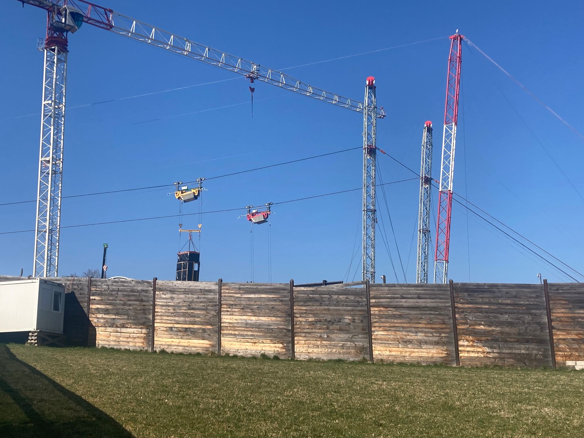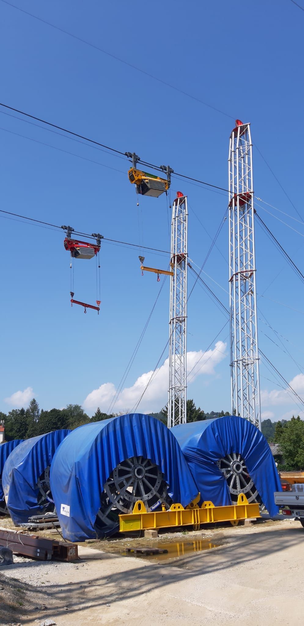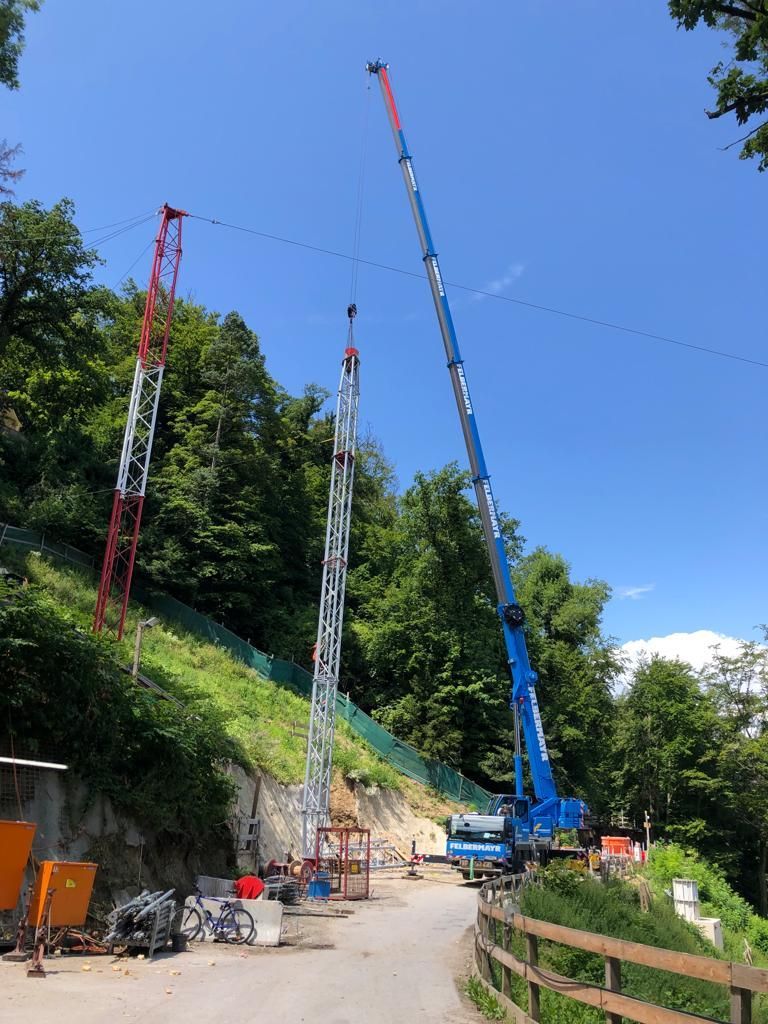 Die zwei Kabelkrane dienten als Hebegeräte über der Donau. Beide Kabelkrane konnten seitlich ausgeschwenkt werden und man konnte auch beide Krane synchron betreiben.