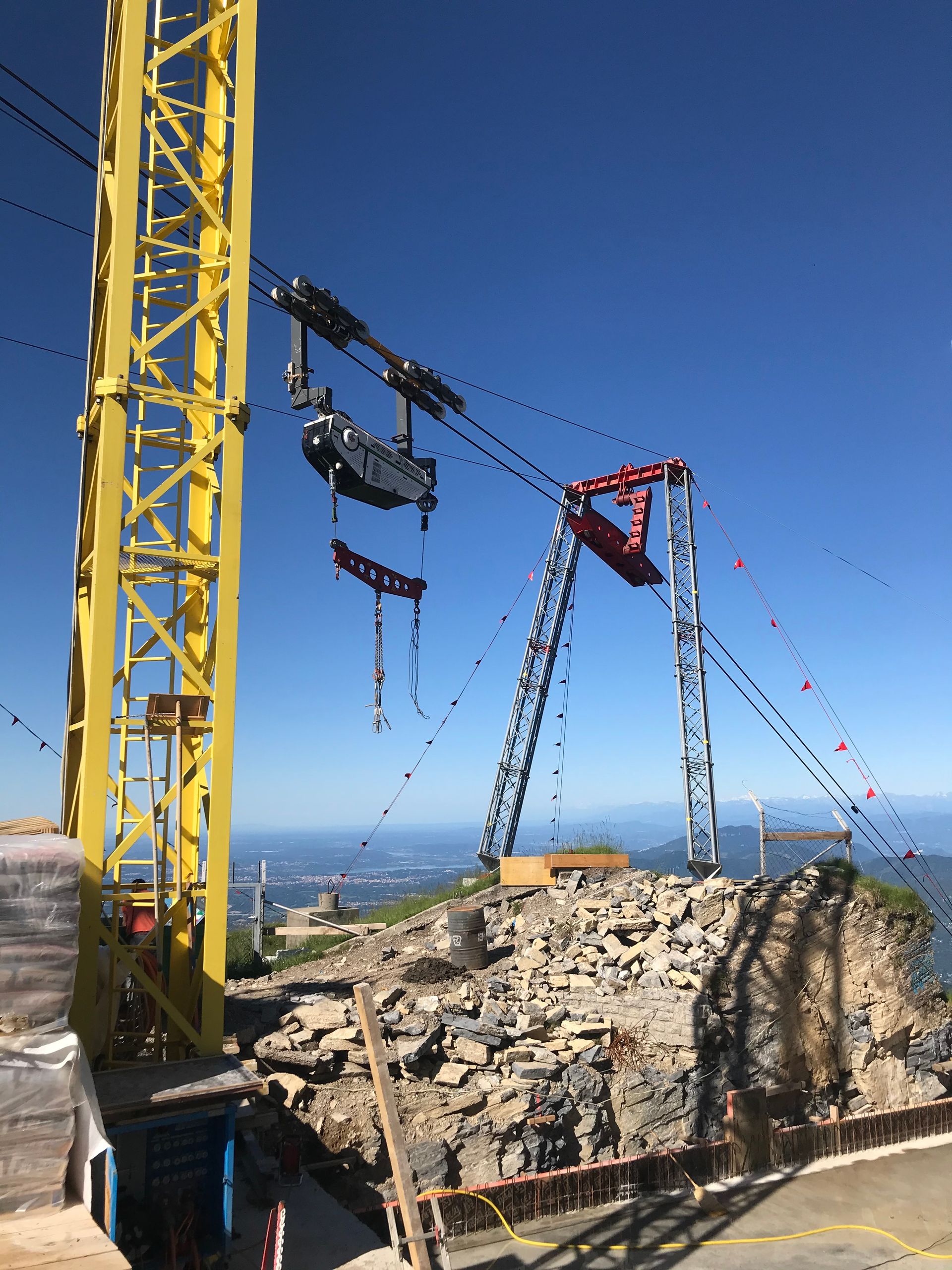 Für Umbauarbeiten wurde eine Transportseilbahn erstellt mit einer Länge von 2800 Meter. Die Talstation befand sich in der Nähe vom Luganersee und die Bergstation auf dem Monte Generoso.