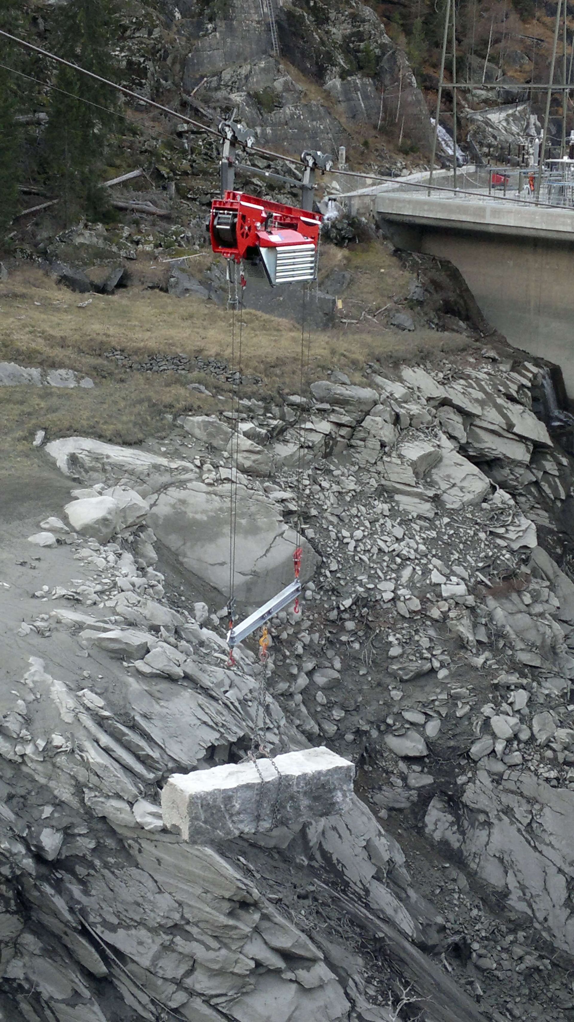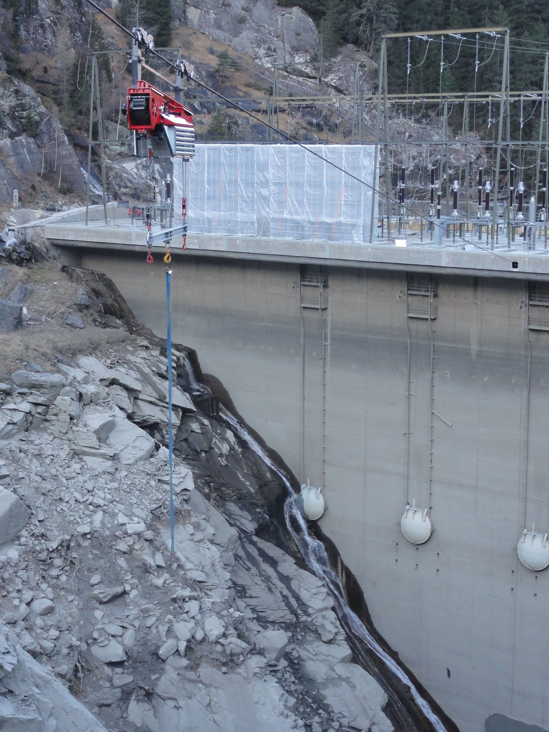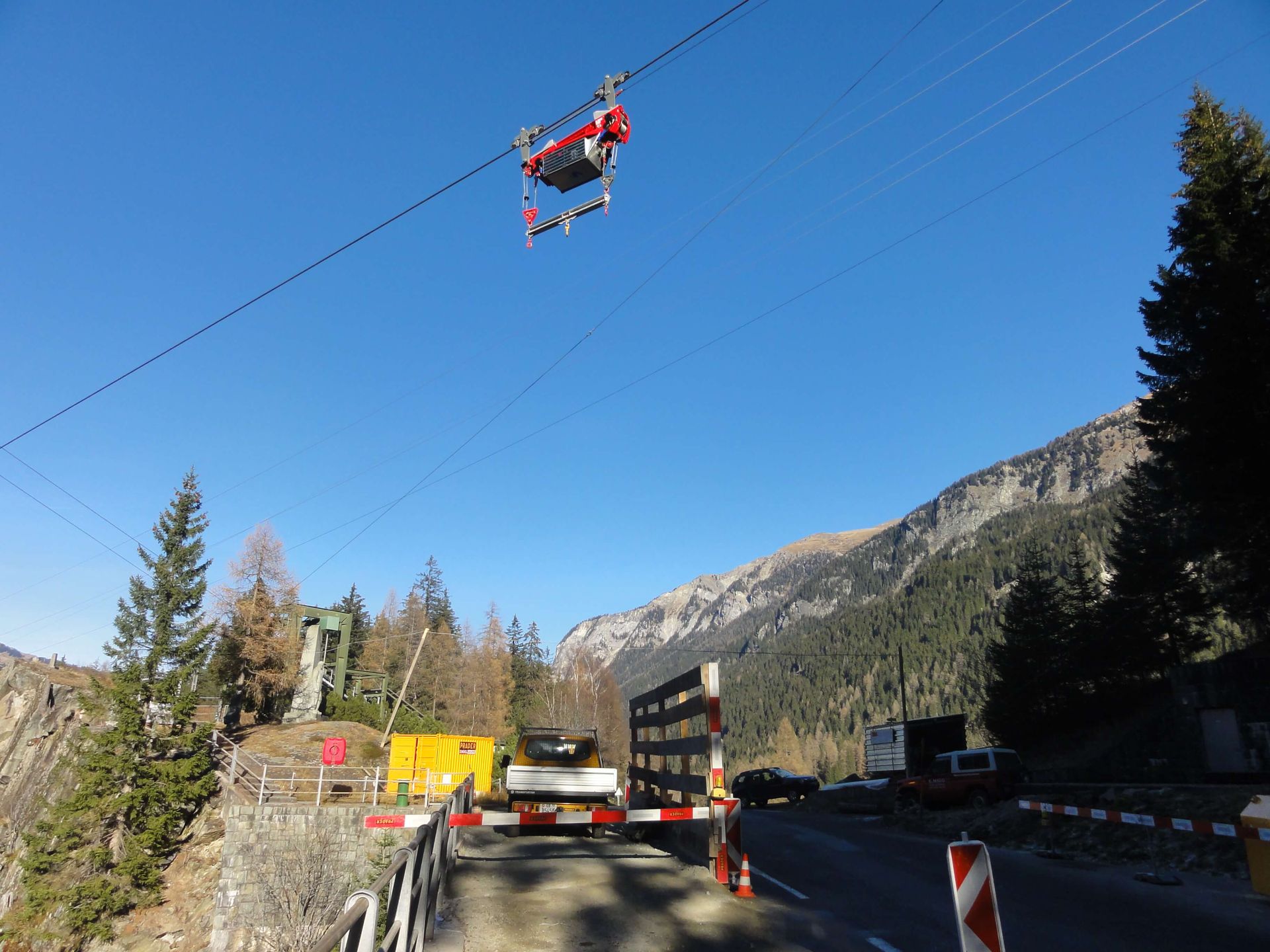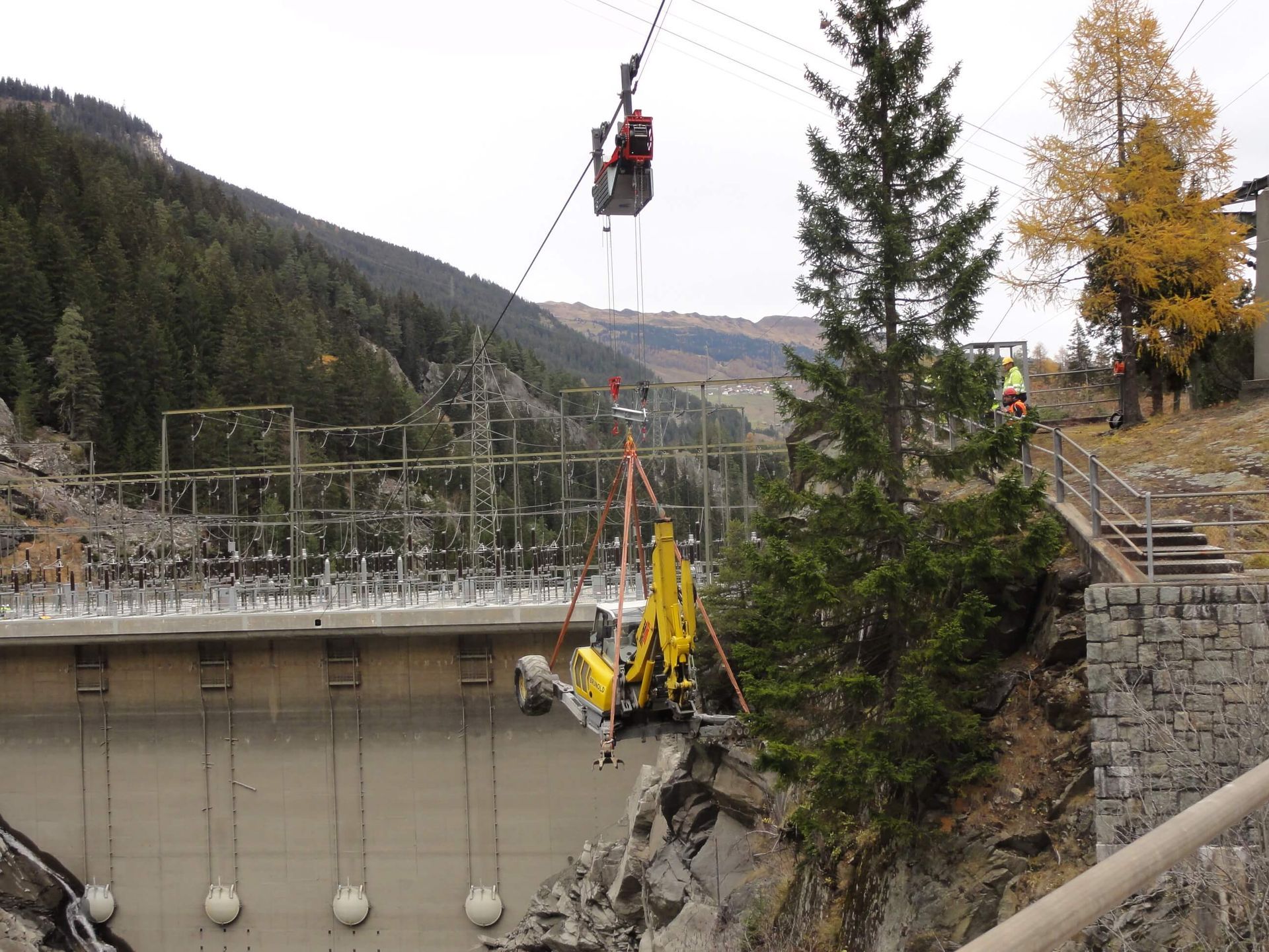 Um den Grundablass der Staumauer in Bärenburg zu sanieren wurde eigens eine Materialseilbahn gebaut. Da der Zeitplan sehr gestrafft war, war eine hohe Verfügbarkeit der Seilbahn nötig.