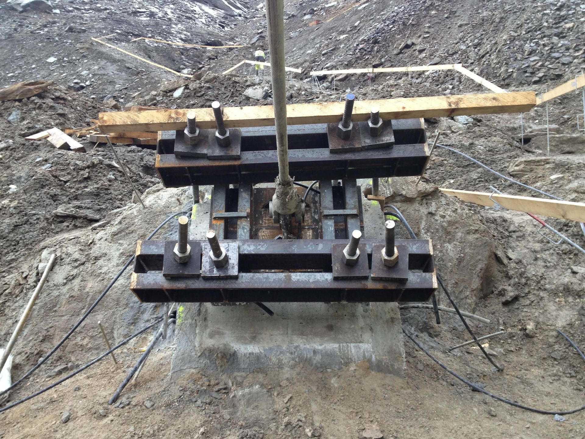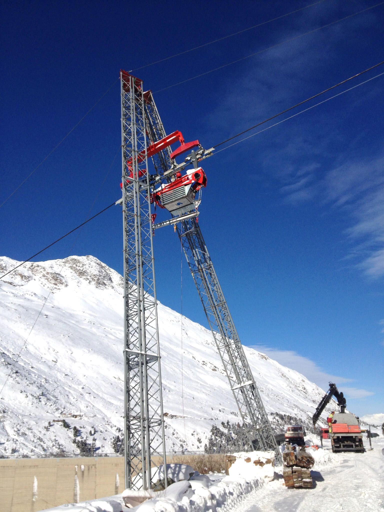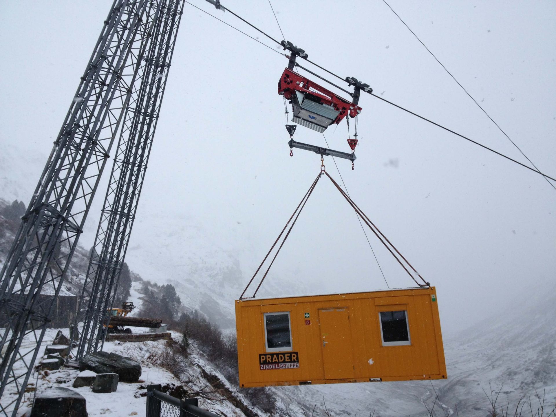 Für die Baustellenlogistik wurde eine Materialseilbahn erstellt, welche vom Rand des Sees bis zum Grundablass führte.