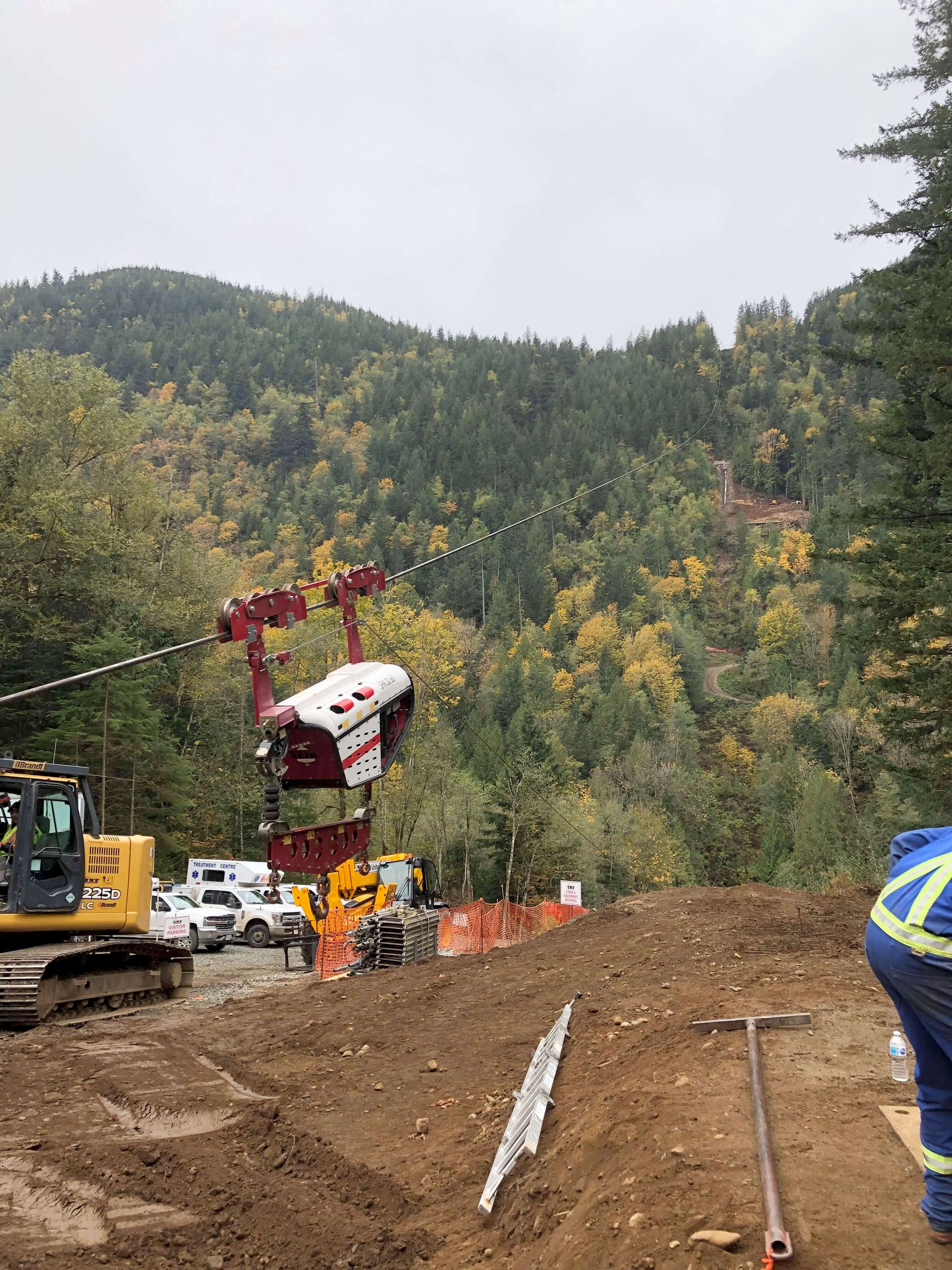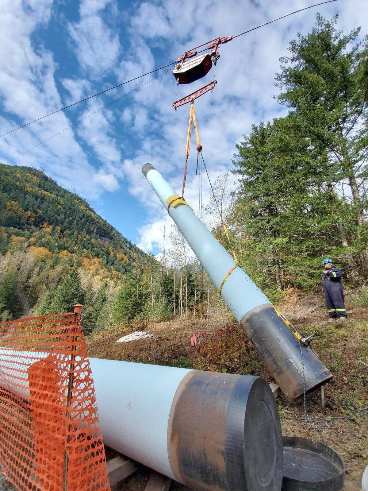 In Kanada, British Columbia durften wir zusammen mit Rocky Mountains Lift Services eine Materialseilbahn erstellen um ein 20m langes Rohrstück einer Gaspipeline zu ersetzen. Die Pipeline verläuft durchs Gebirge in der Nähe von Hope BC.