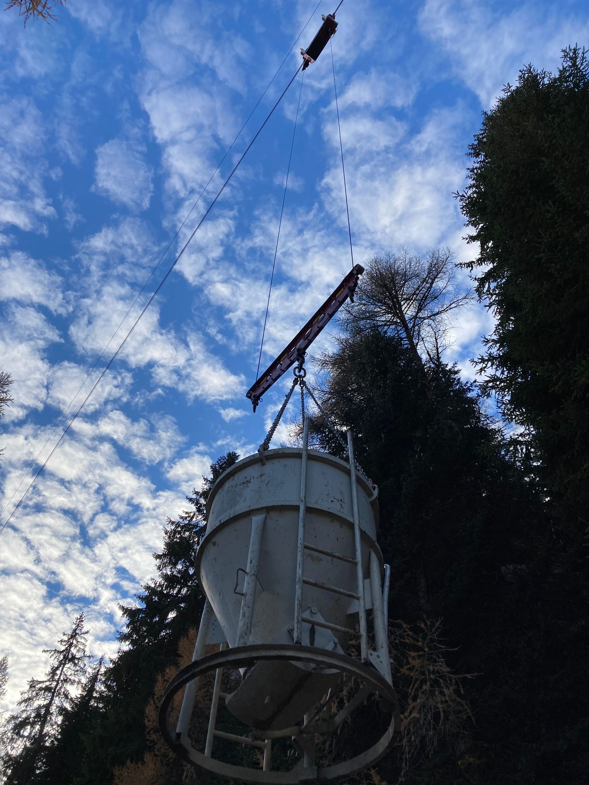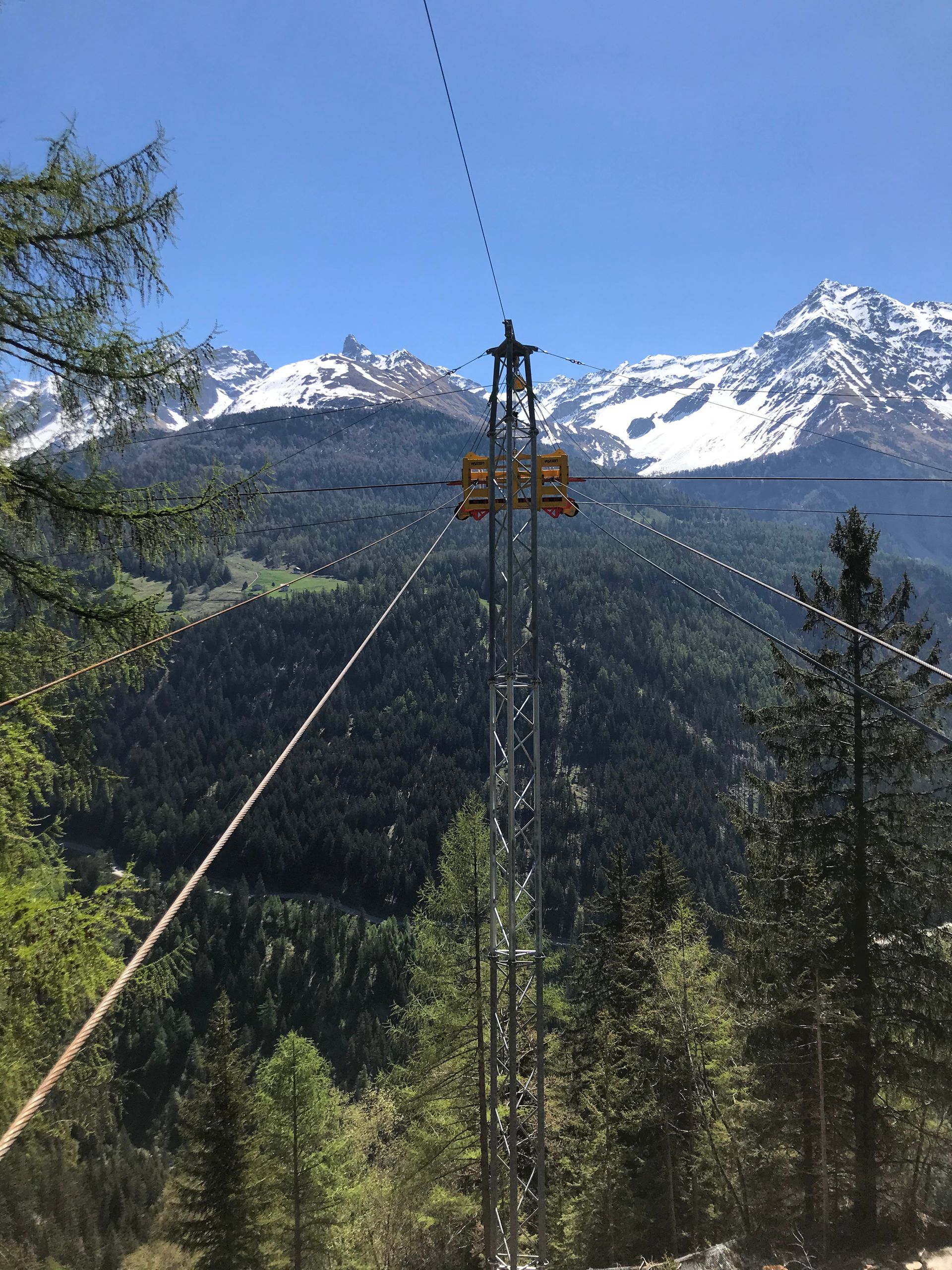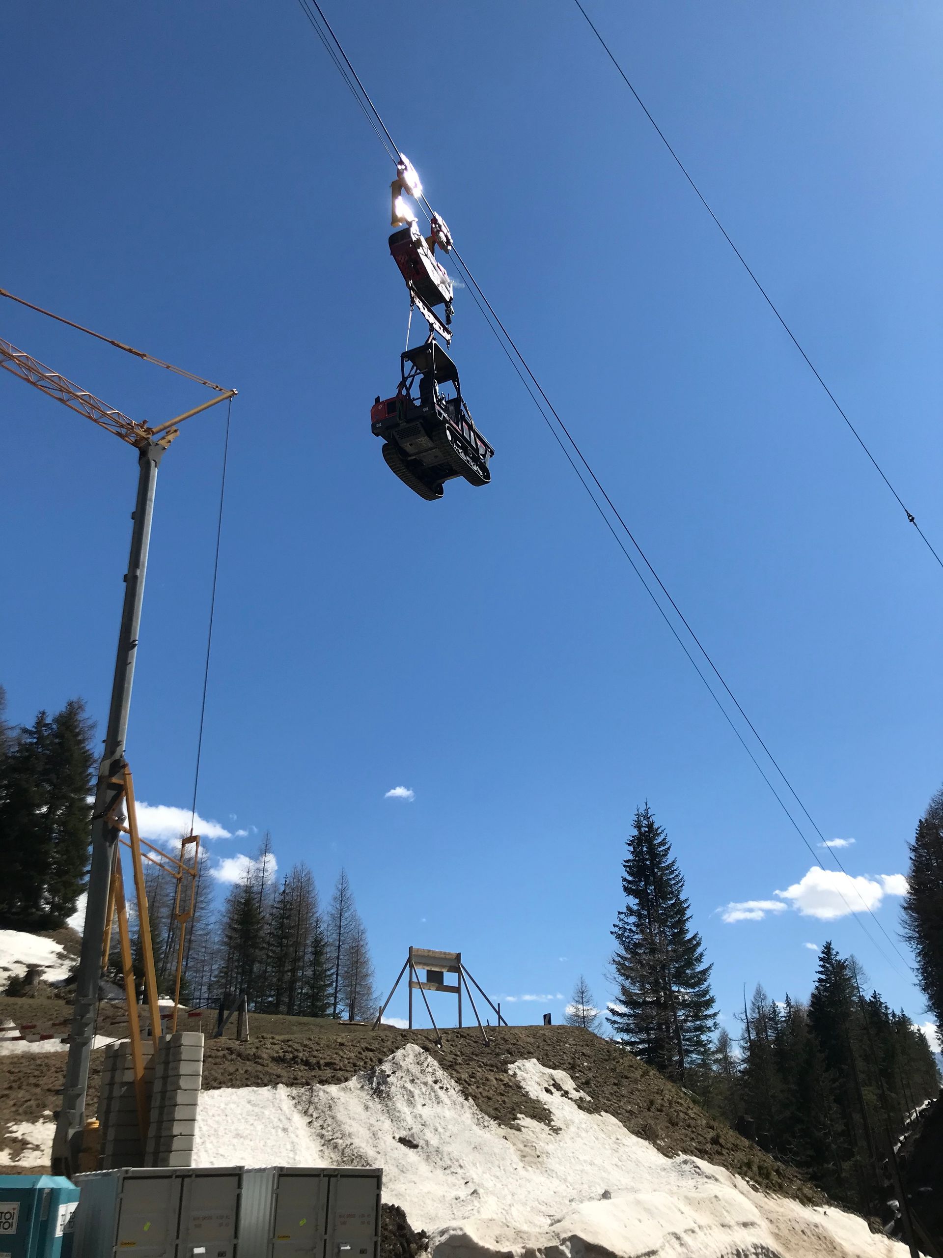 Für den Bau der Überleitung wurde eine Materialseilbahn gebaut mit einer einer Länge von 2 Kilometern welche horizontal dem Tal entlang verlief. Dabei mussten zwei Links- und zwei Rechtskurven gebaut werden mit einer Ablenkung von bis zu 17°.